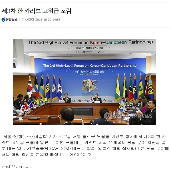[참고자료] 연합뉴스5)한-카리브 고위급 포럼